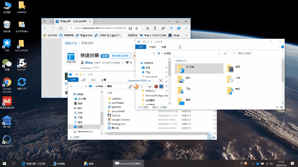 使用大屏显示器的朋友越来越多,这个动作可以快速将桌面已打开的(非最小化或隐藏)窗口快速整理分屏。